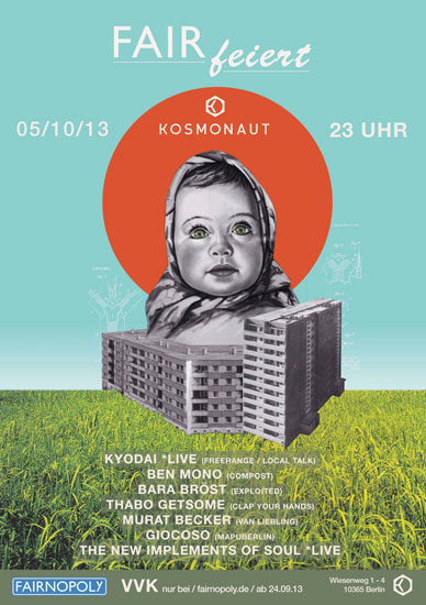 FAIRfeiert – ja, ja, schon wieder einer dieser tollen Wortspiele … Aber diesmal stimmt’s wirklich! Fairnopoly: der neue Online-Marktplatz für alle ist dabei sich gegen die bestehenden online Riesen durchzusetzen. Nach dem offiziellen Launch von Fairnopoly kannst Du Dich FAIRfeiern. Support kommt von der Lila Family. Thabo Getsome und Bara Bröst werden ordentlich Gas geben, um die Online-Riesen ins Wanken und euch zum Tanzen zu bringen. Dazu gibt´s ein großartiges Line-Up mit folgenden Herrschaften: